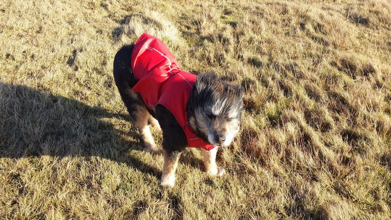 Then the wind picked up...the gusts gave fair warning, first howling over the ridge 200m away before hitting the tent...every 2 minutes or so...all night long...while I was lying wide awake in an unfamiliar tent, not using the storm guys as I couldn't figure out how they attach, pitched on very soft ground, very exposed, quite remote, no phone signal, unfriendly locals, sharp pitch forks...we slept badly, well I did, the dog probably didn't give a hoot. But I kept thinking, if we survive, there should be a terrific sunrise, MET office promised a day of sun.